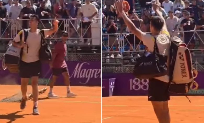 Apenas se confirmó el abandono de su rival, el chillanejo respondió con ironía: apuntó hacia la tribuna, lanzó besos y saludó con la mano, encendiendo aún más a los fanáticos brasileños, que redoblaron los abucheos.